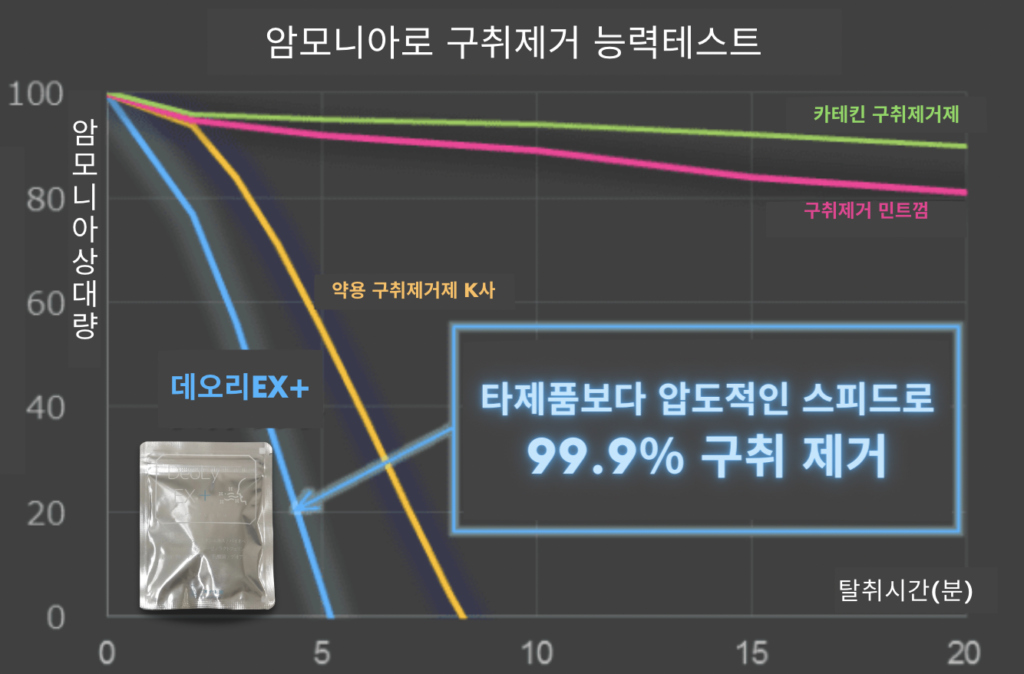 일본의 최첨단 의료에 의해 만들어진 데오리EX+일반의 30배나 되는 탈취력이 있다고 알려져 있어요!