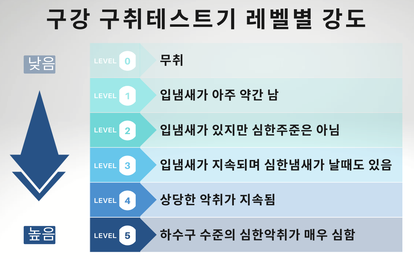 • 곰팡이 냄새 : 간기능 저하로 간에서 분해되어야 할 냄새물질이 분해되지 않아 입냄새 원인으로 작용