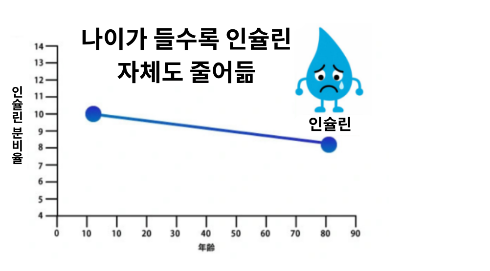 인슐린 분비가 줄고, 기능이 둔화됩니다.