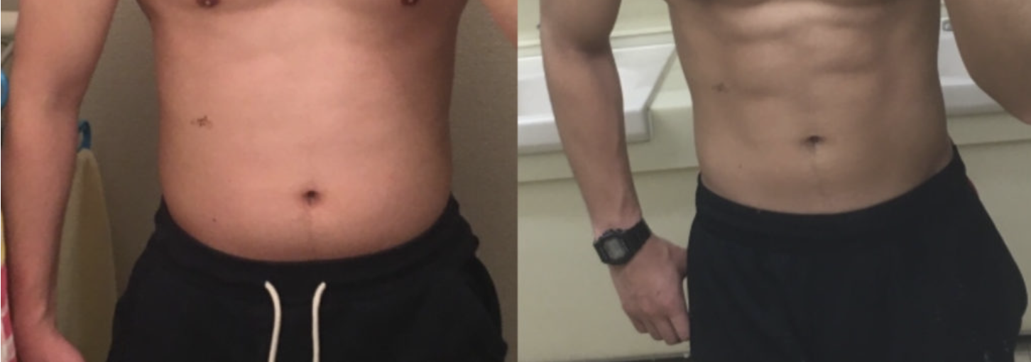 L카르니틴을 섭취하지 않은 A씨 (왼쪽) 의 체형에서는 아무런 변화가 나타나지 않은 반면 , L카르니틴을 섭취한 B씨(오른쪽)은 점점 살이 빠져가는 것이 확인되었습니다.
