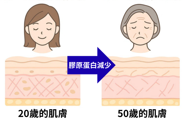 然而遺憾的是,隨著年齡增長,膠原蛋白含量只會持續減少…